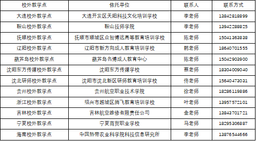 附表:校外教学点及联系方式
