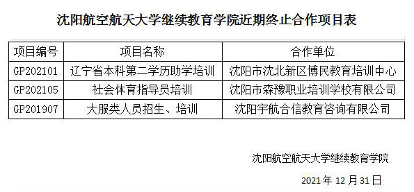 由于客观原因,经协商,永利官网以下非学历培训项目停止招生,特此公告。