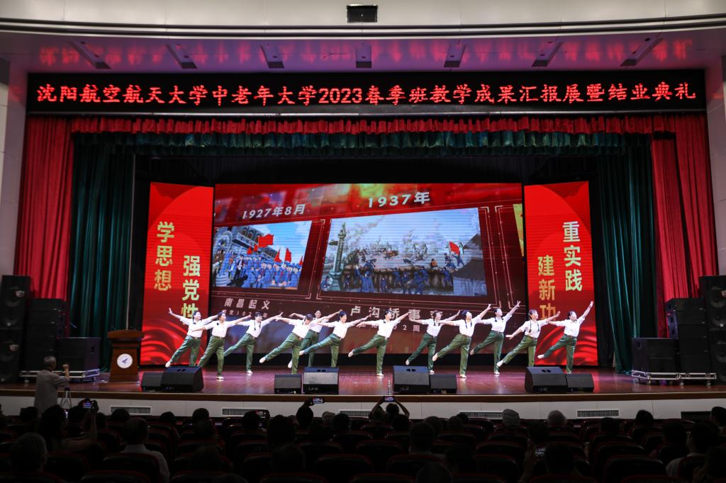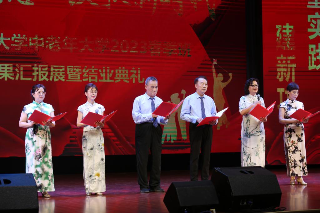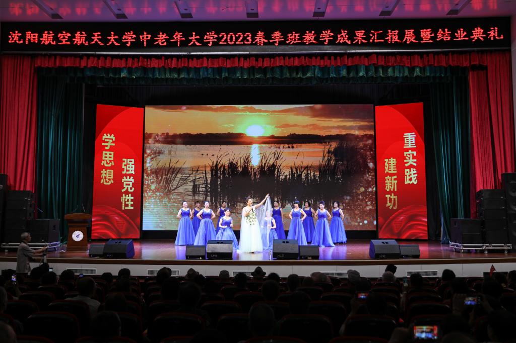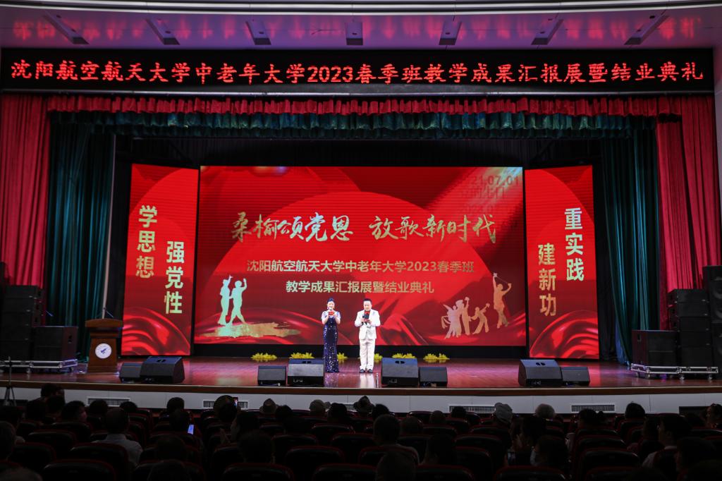 7月11日,在中国共产党成立102周年之际,在全党深入开展习近平新时代中国特色社会注意思想主题教育热潮中,由yl9193永利集团、离退休职工工作处联合举办的“桑榆颂党恩,放歌新时代”——永利官网中老年大学2023春季班教学成果主题汇报展暨结业典礼,在蓝天剧场隆重举行。校党委常委宣传部部长周驰、yl9193永利集团院长张猛、yl9193永利集团直属党支部书记于经宇、离退休职工工作处王建民、教务处正处级督学王志成、沈航中老年大学全体师生及学校周边社区群众200余人参加典礼。典礼仪式由离退休职工工作处田利民老师和yl9193永利集团副院长周晓芳主持。