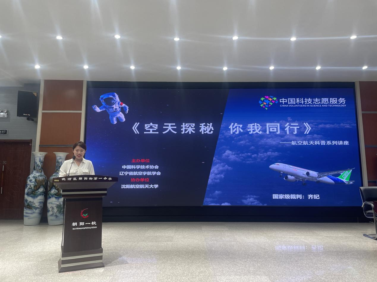 此次活动为朝阳一校师生们精心设计了航空科普讲座和趣味实操体验两个环节。辽宁省航空宇航学会、科普工作委员会秘书齐纪给师生做《空天探秘你我同行》航空航天科普讲座。讲座现场掌声笑声不断,气氛热烈。