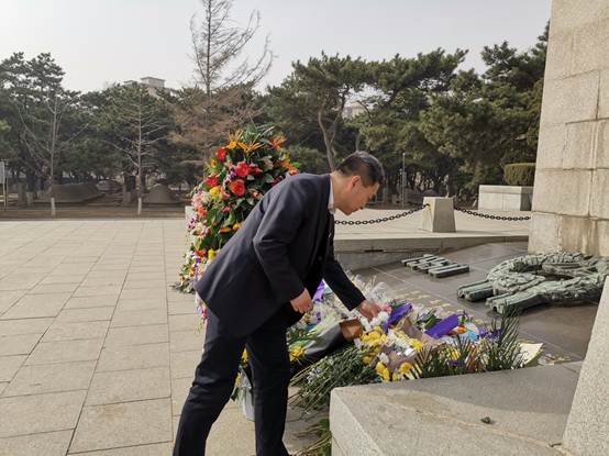 4月4日下午,王志成书记带领yl9193永利集团全体党员和部分群众代表来到抗美援朝烈士陵园,在庄严肃穆的烈士纪念碑前举行了简短的悼念仪式。通过肃立、默哀、献花等方式表达了对革命先烈的景仰和追思。